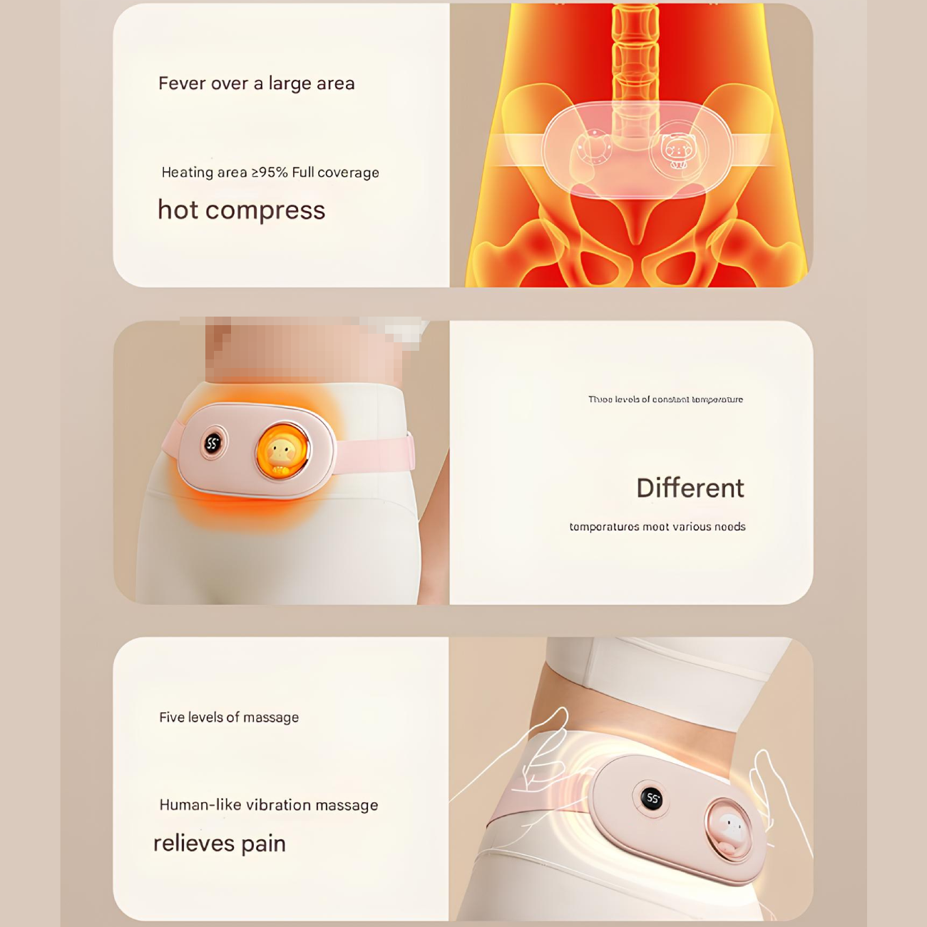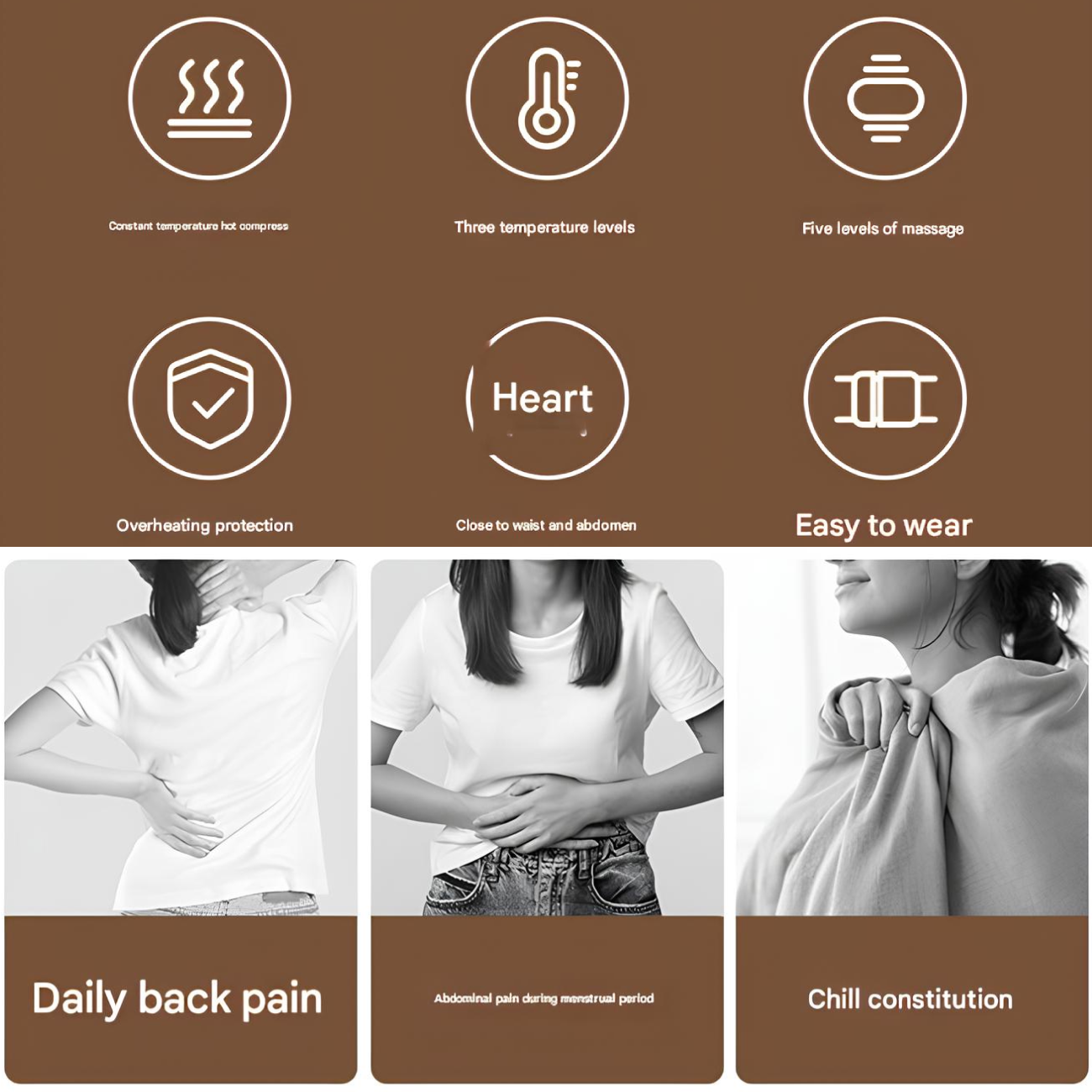 | قابل استفاده برای | کمر، شکم و رحم، بانوانی که درد قاعدگی دارند. کسانی که نیاز به تسکین درد در ناحیه کمر و شکم دارند و به دنبال جایگزین مناسب کیسه آب گرم هستند. |