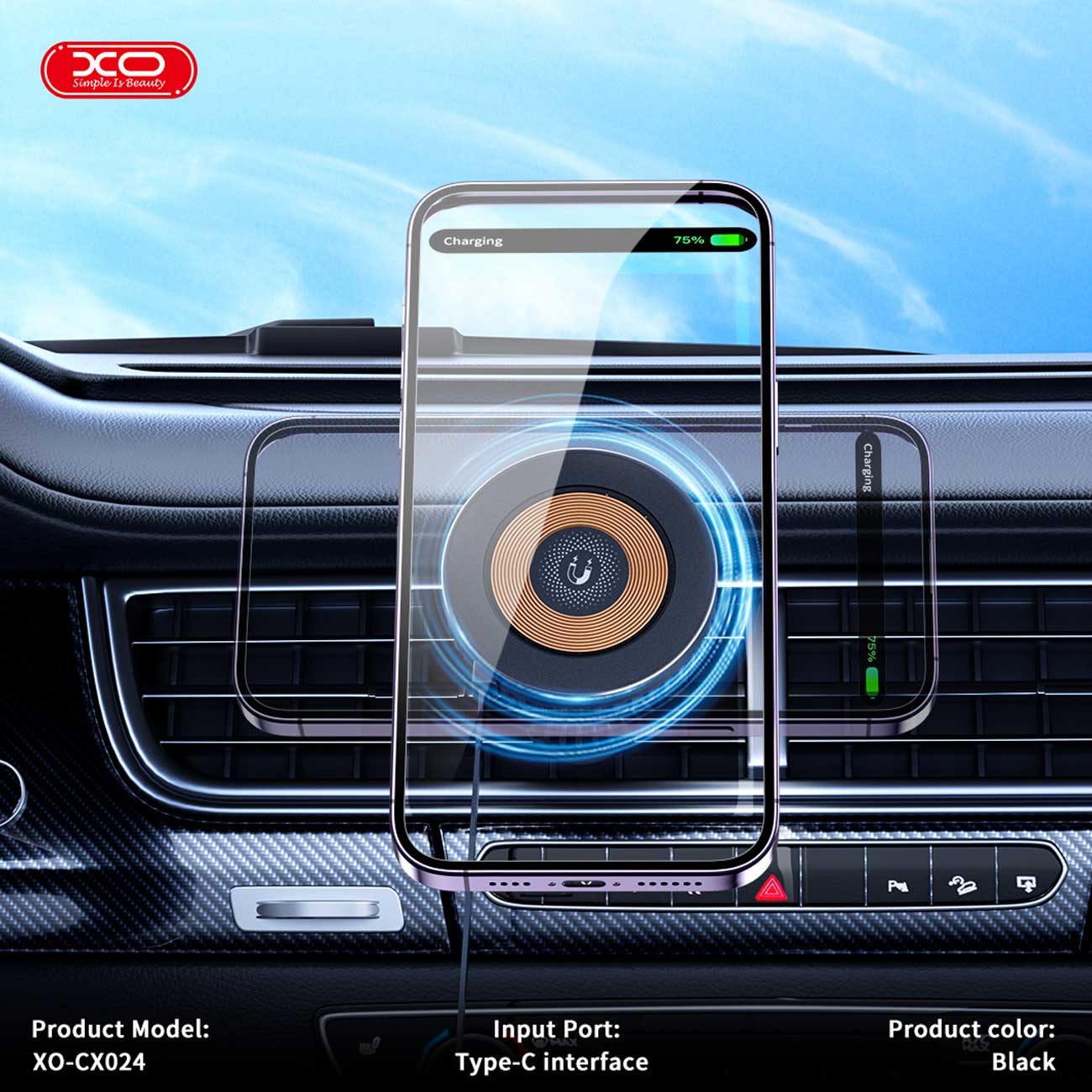 XO car holder magnetic CX024 with wireless inductive charger 15W with USB-C cable