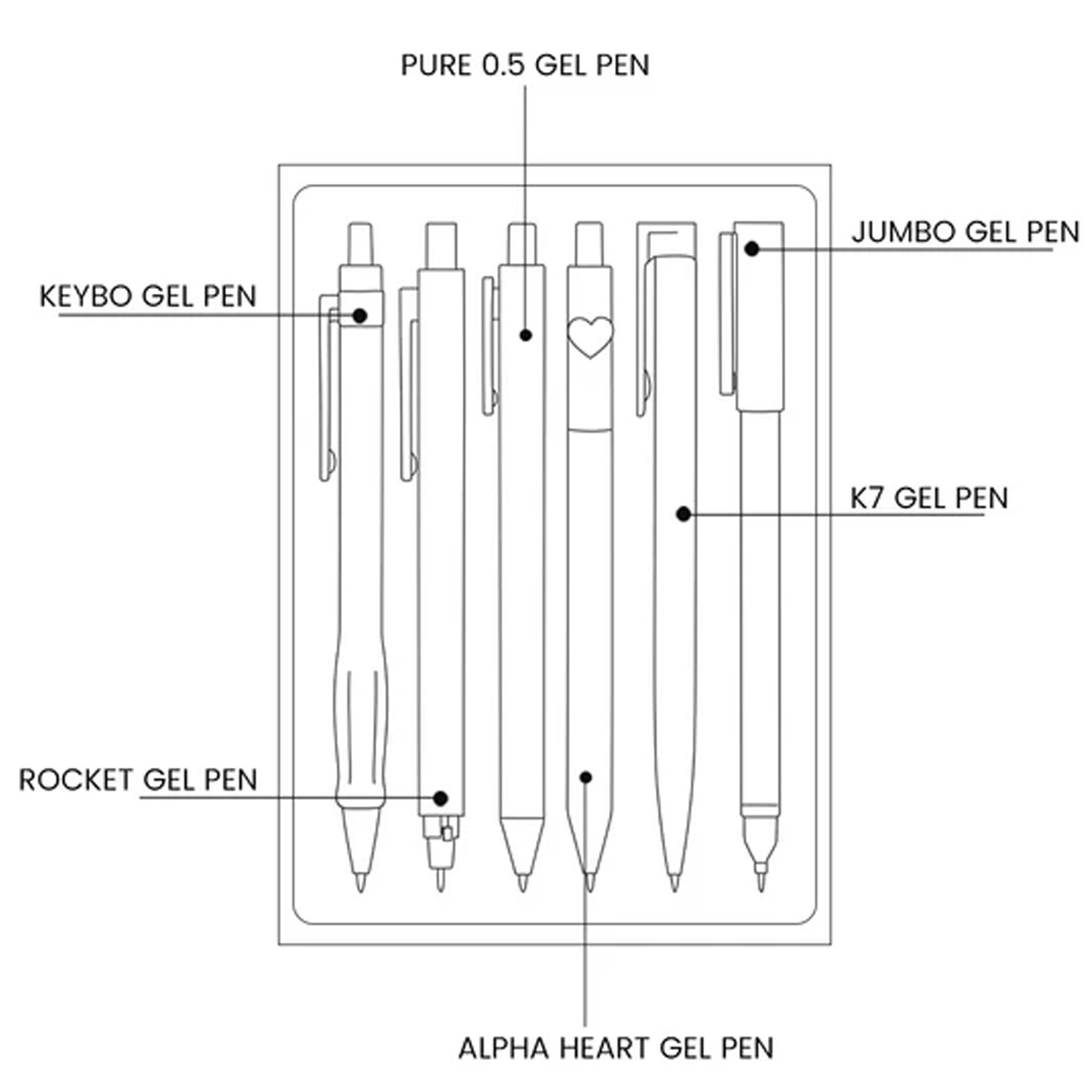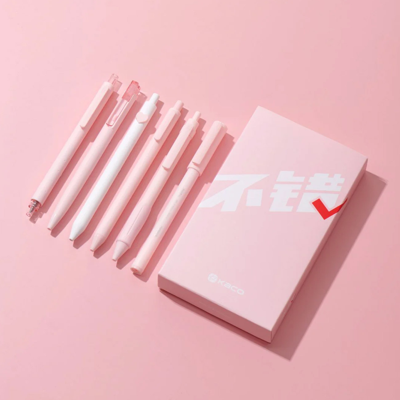 خودکار ژله ای مشکی کاکو KACO مدل PINK GEL نوک 0.5 میلیمتری 6 عددی