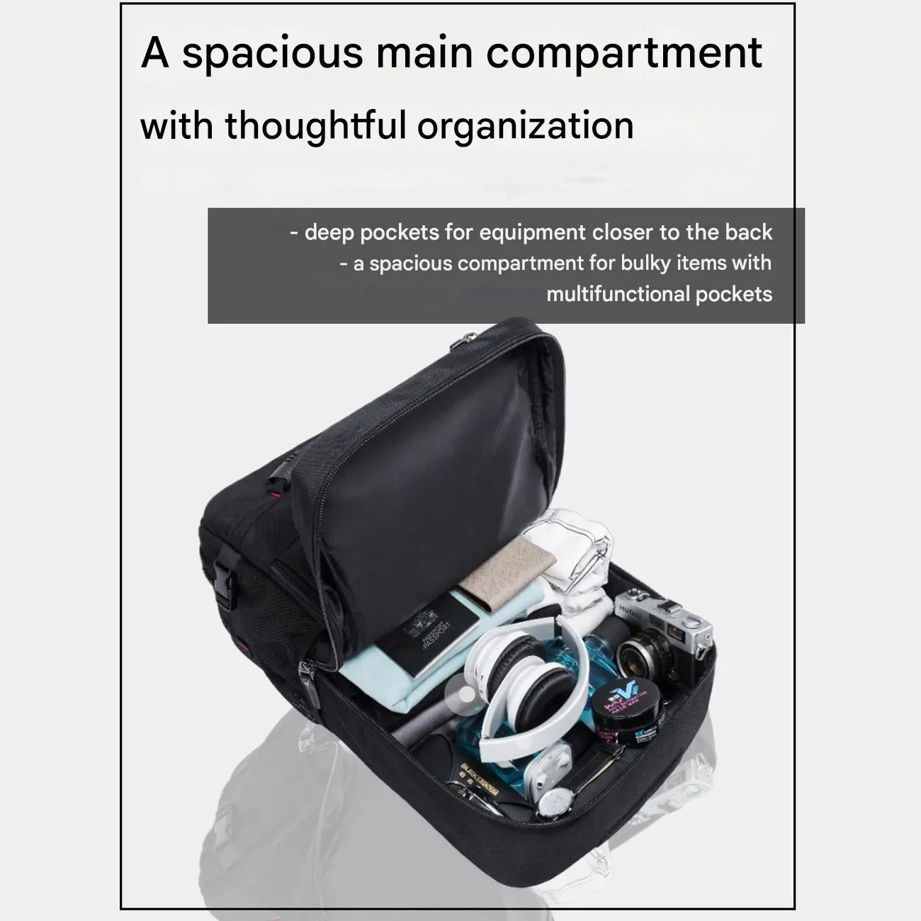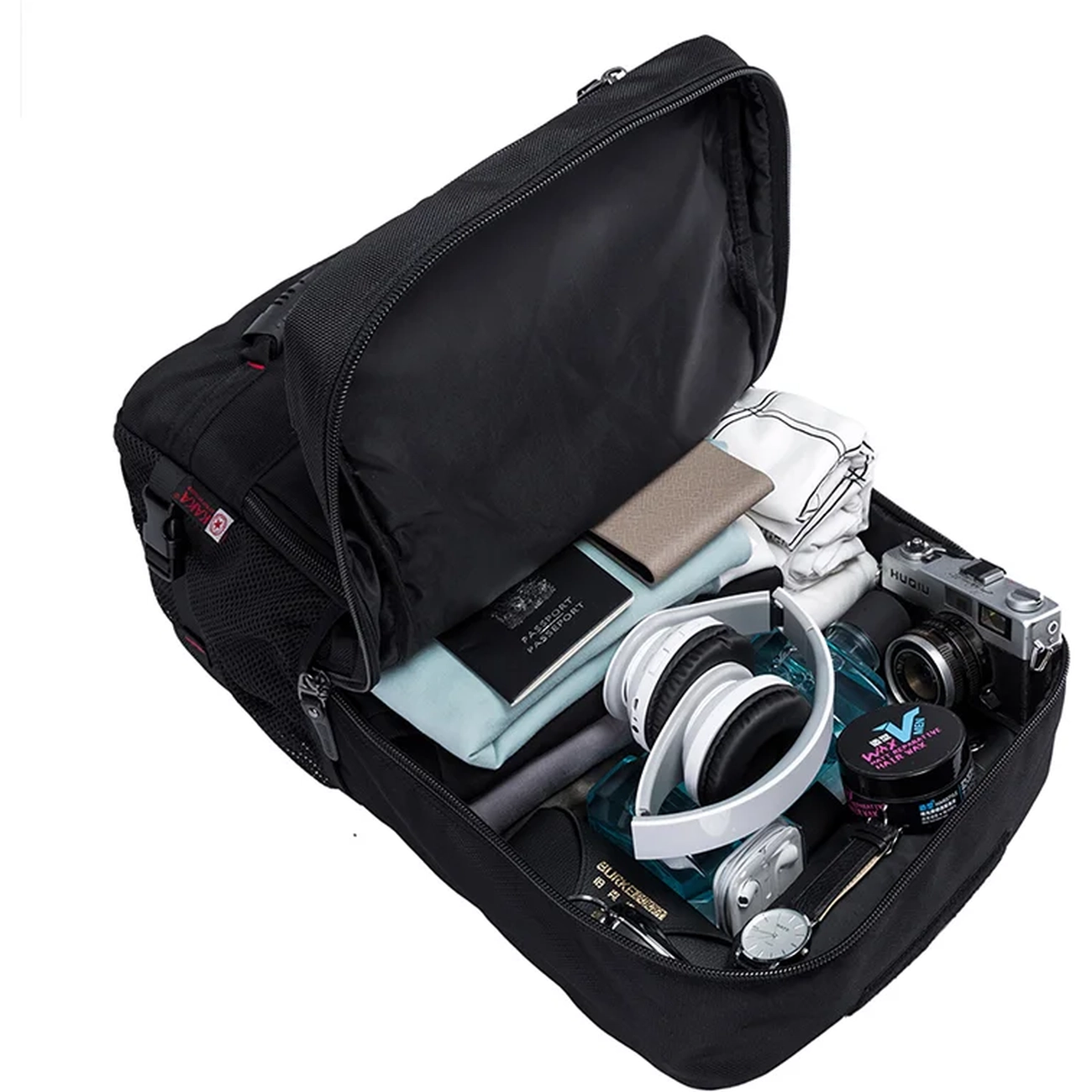 | محفظه اصلی | دارای جیبهای متعدد توری و تسمههای کشی برای نگهداری لباس |