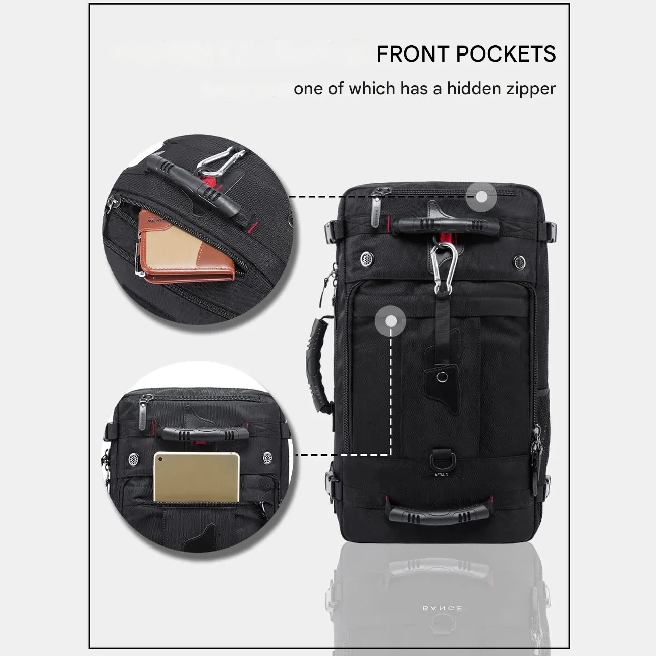 | تعداد حالتهای حمل | 3 حالت: کوله پشتی، ساک دستی (Duffle)، کیف رودوشی |