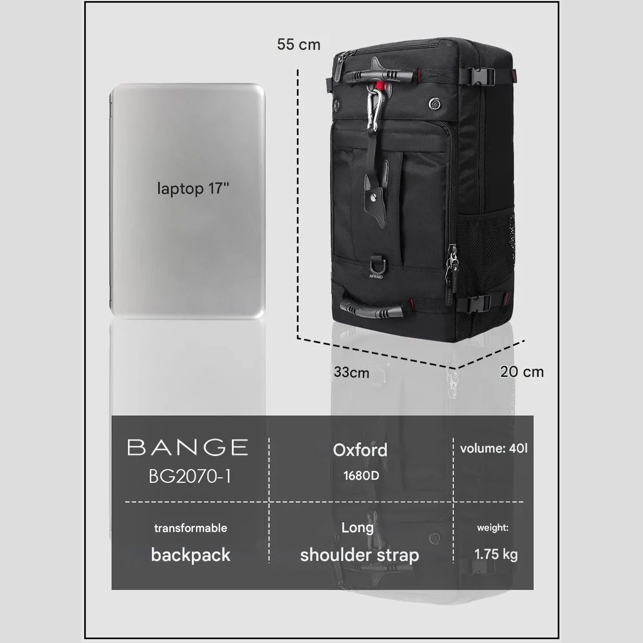 کوله پشتی لپ تاپ 17 اینچ بنج BANGE مدل BG-2070-1 ظرفیت 40 لیتر