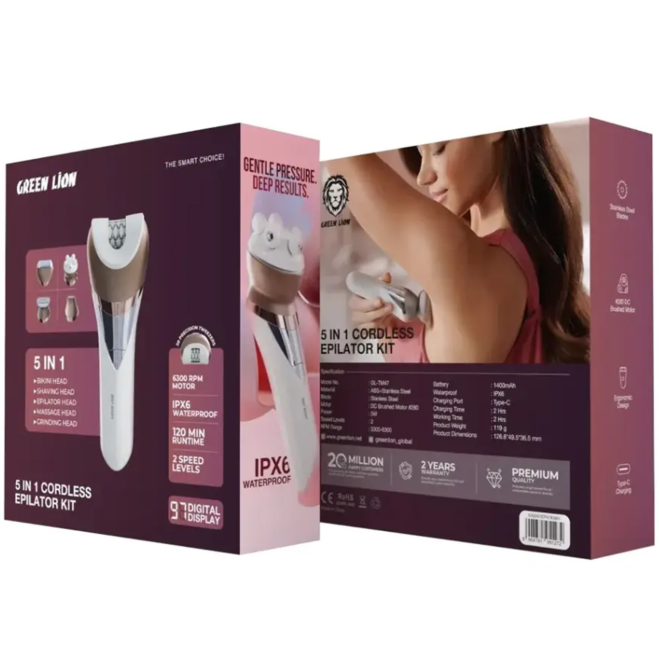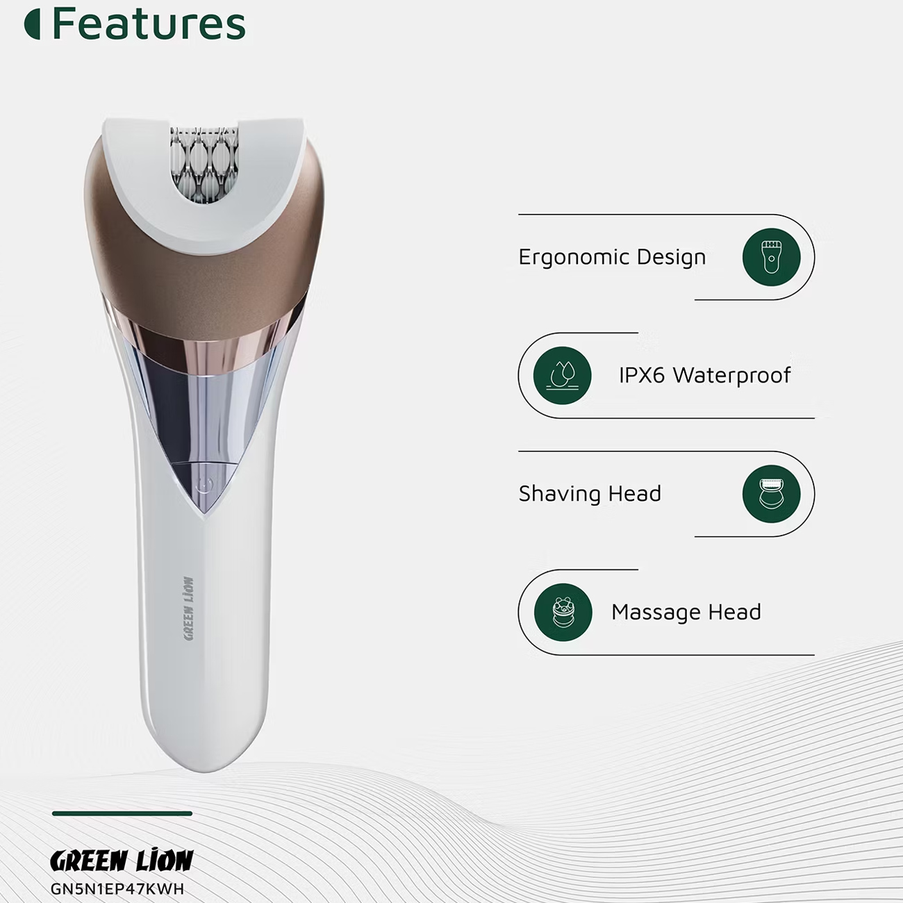 اپیلاتور گرین لاین Green Lion اصل مدل GL-TM47 شارژی 5 کاره