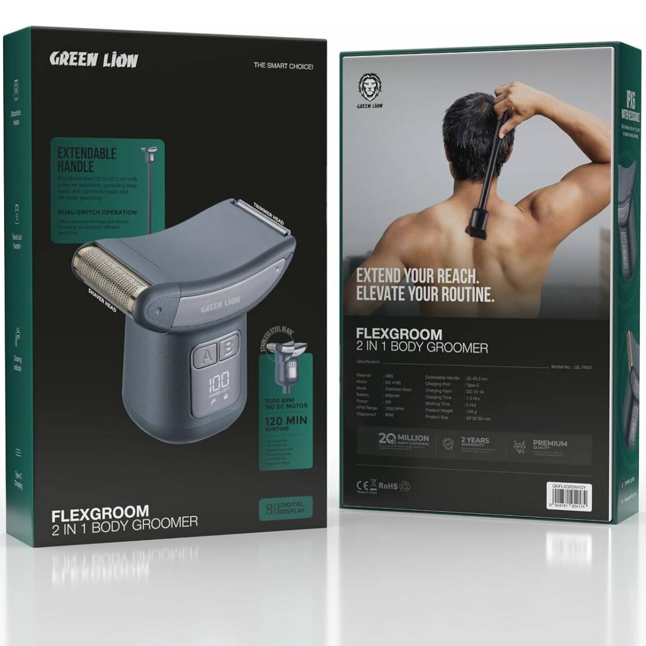 Green Lion GL-TM37 Flexgroom 2 in 1 Body Groomer GNFLXGR2N1GY