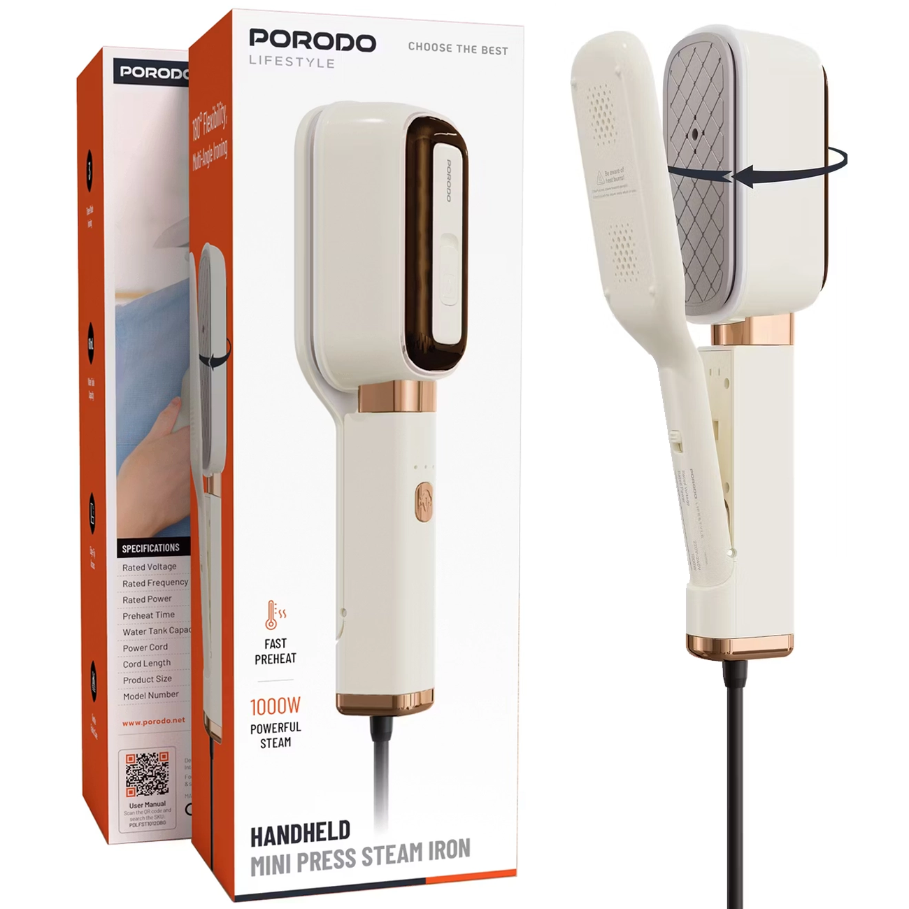 اتو بخار دستی پورودو Porodo مدل PDLFST215BG توان 1000 وات