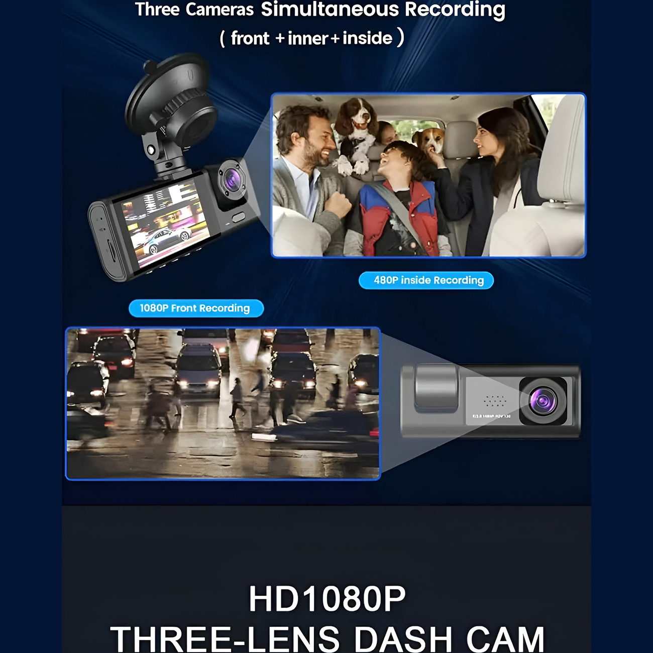 | قابلیت ها | ضبط مسیر و داخل خودرو با سه لنز همزمان (Front + Inside + Rear) |