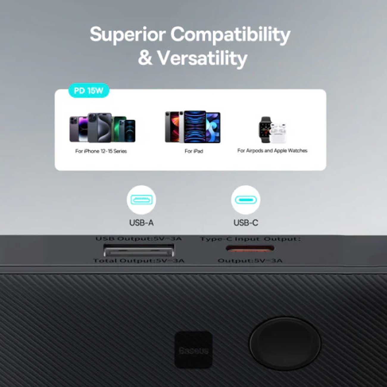 پاوربانک 10000 باریک یواسبی و تایپسی 15 وات بیسوس Airpow Lite P10067500123