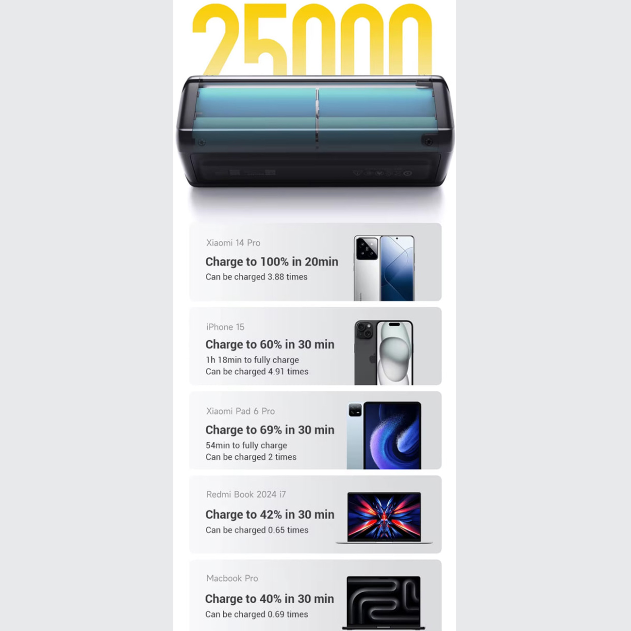 | ظرفیت واقعی | 90.8Wh 3.63V 25000mAh |