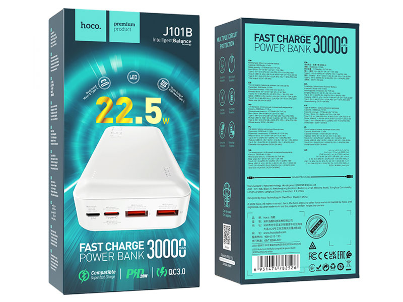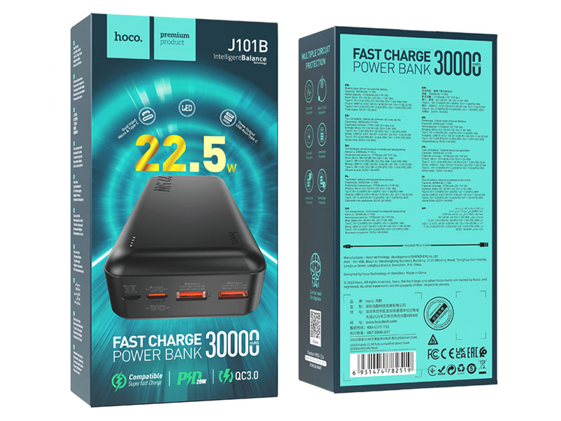 hoco J101B Astute 22.5W fully compatible power bank (30000mAh)