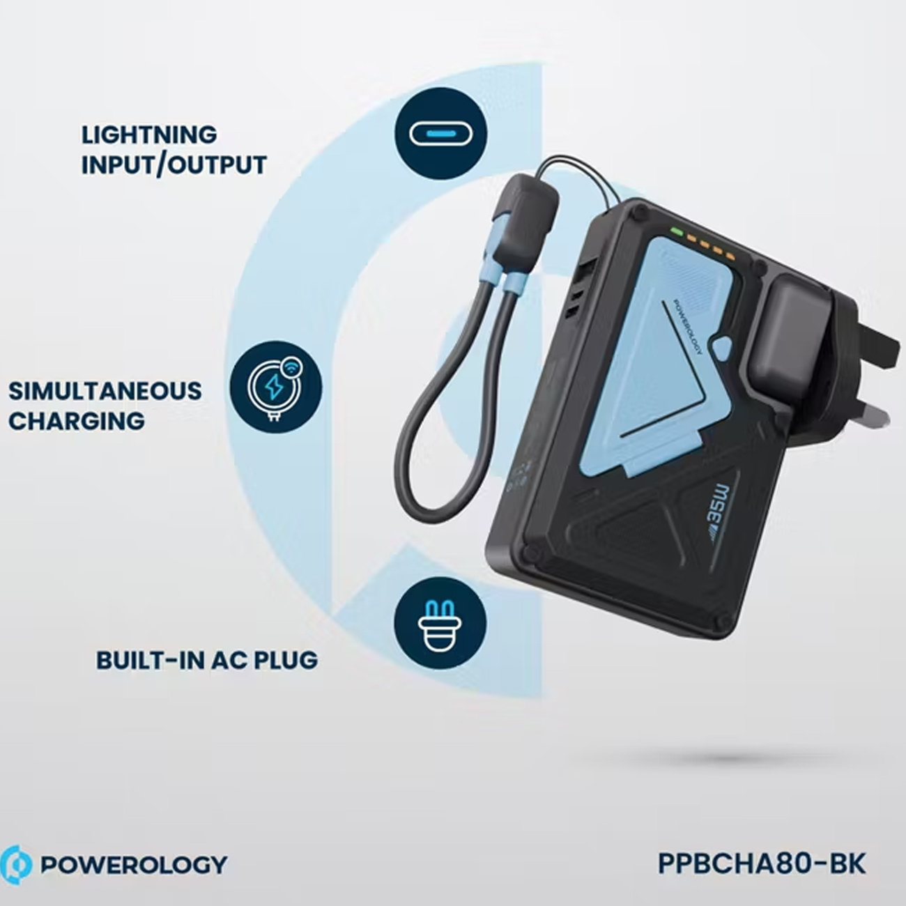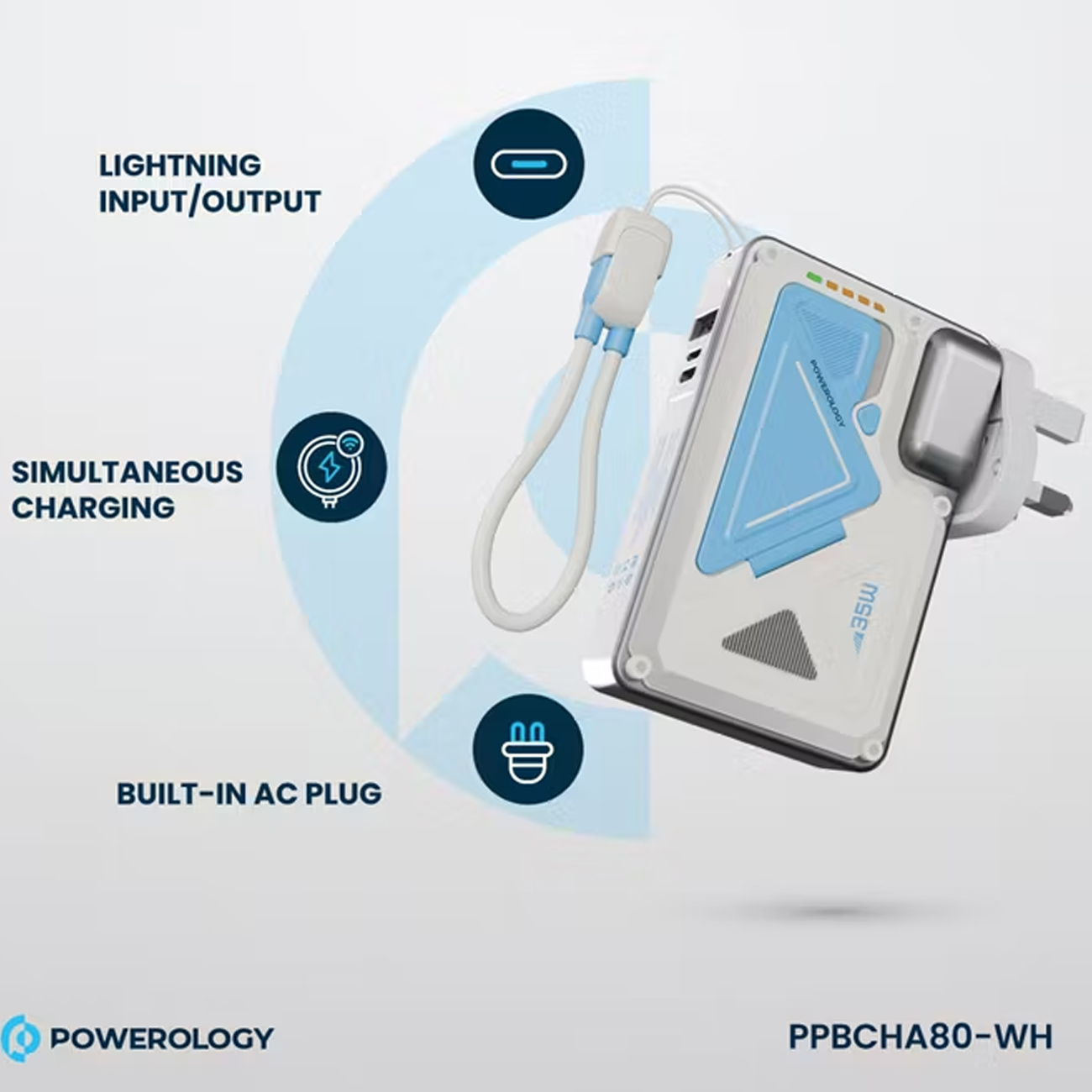 Powerology 10000mAh Wall Charger MagSafe Power Bank PPBCHA80/PPBCHA80WH/PPBCHA80BK