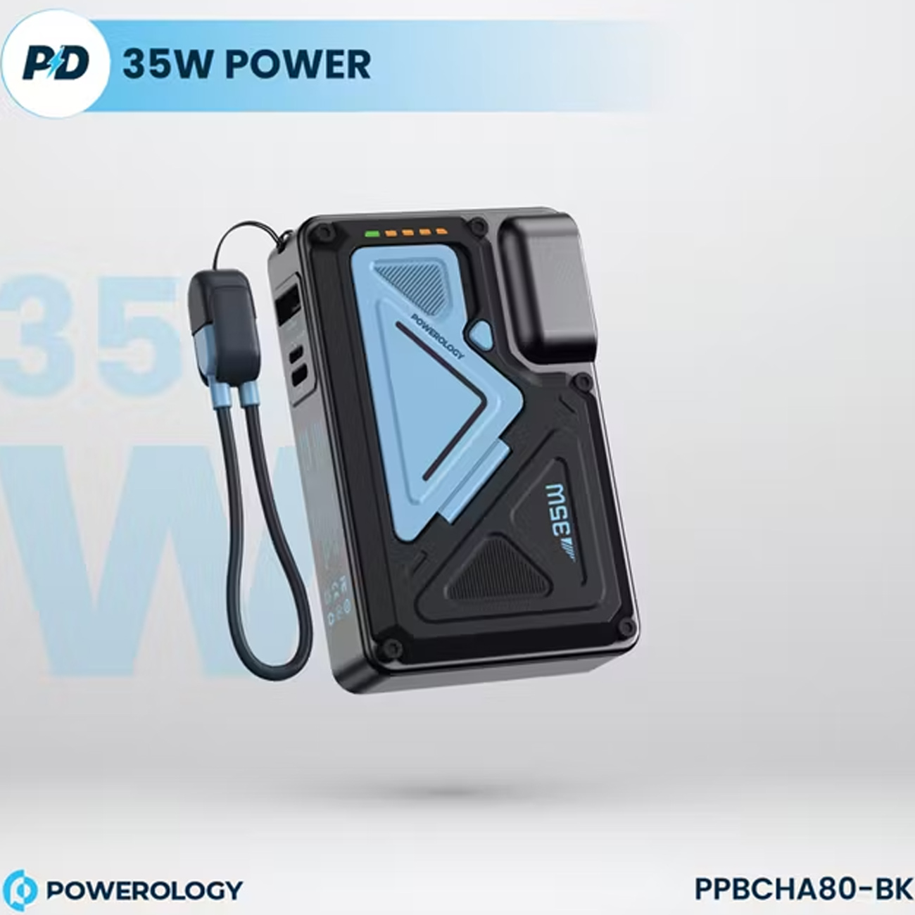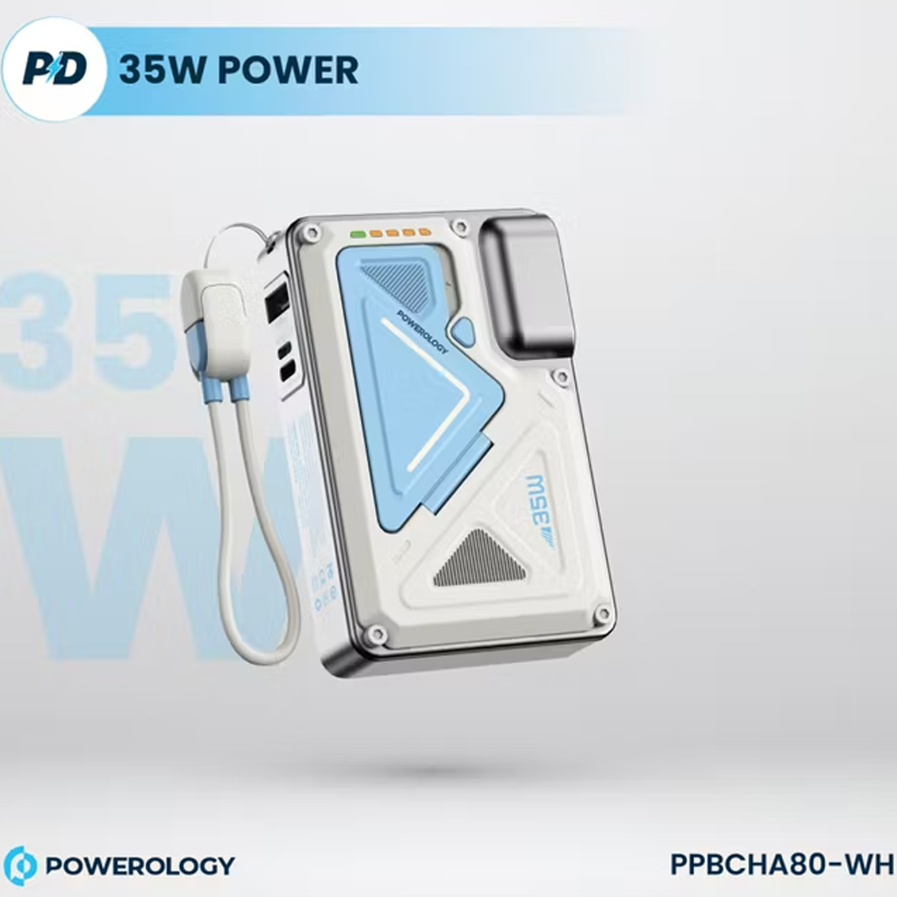 پاوربانک 10000 وایرلس و شارژر دیواری Type-C، USB و لایتنینگ فست شارژ 35 وات پاورولوژی Powerology PPBCHA80