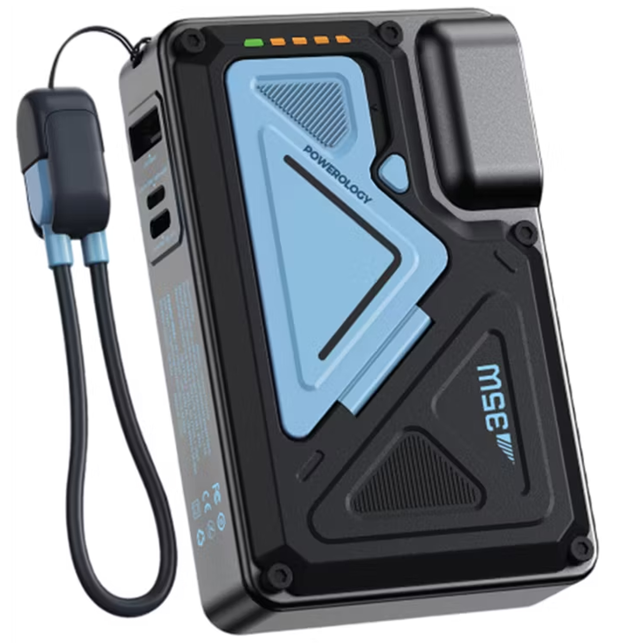 | توان خروجی | خروجی Type-C: حداکثر 35W (PD)خروجی Lightning: حداکثر 35W (PD)خروجی USB-A: حداکثر 22.5Wخروجی بیسیم MagSafe: حداکثر 15W (پشتیبانی از 5W / 7.5W / 10W) |